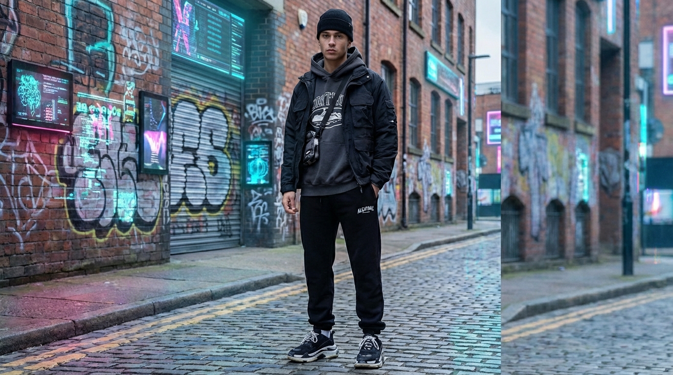 In summer, wear a Corteiz hoodie over baggy shorts for a sporty look. Choose neutral colours like black, grey, or navy so the hoodie logo still stands out. Add white socks and sneakers for a clean vibe.