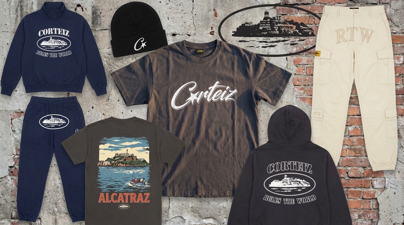 Corteiz is a London streetwear brand famous for its Alcatraz logo. It only sells through surprise online drops that sell out in minutes. Sizes run oversized, so size down for a fitted look. Buy only from corteiz.com or trusted resellers like StockX.