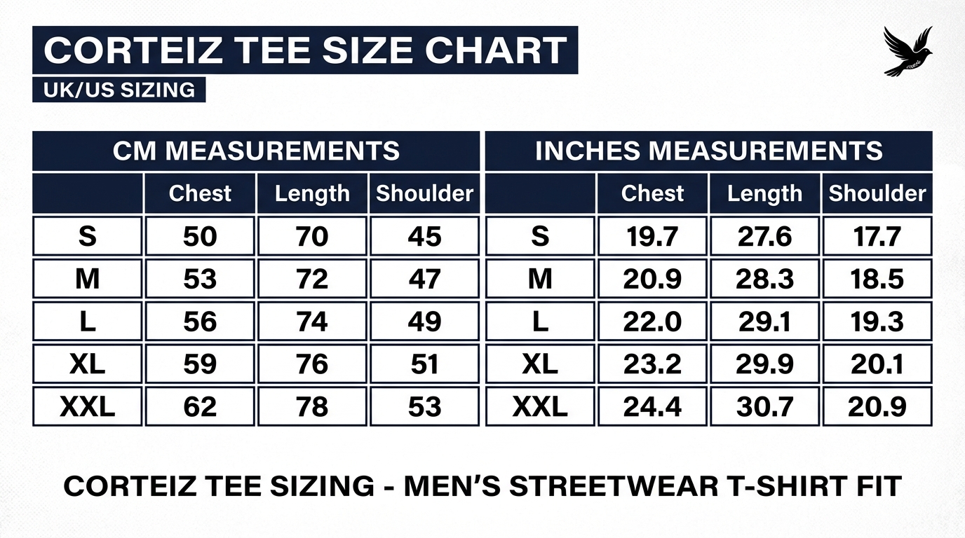 Corteiz Tee Sizing Guide (UK & US Fit)