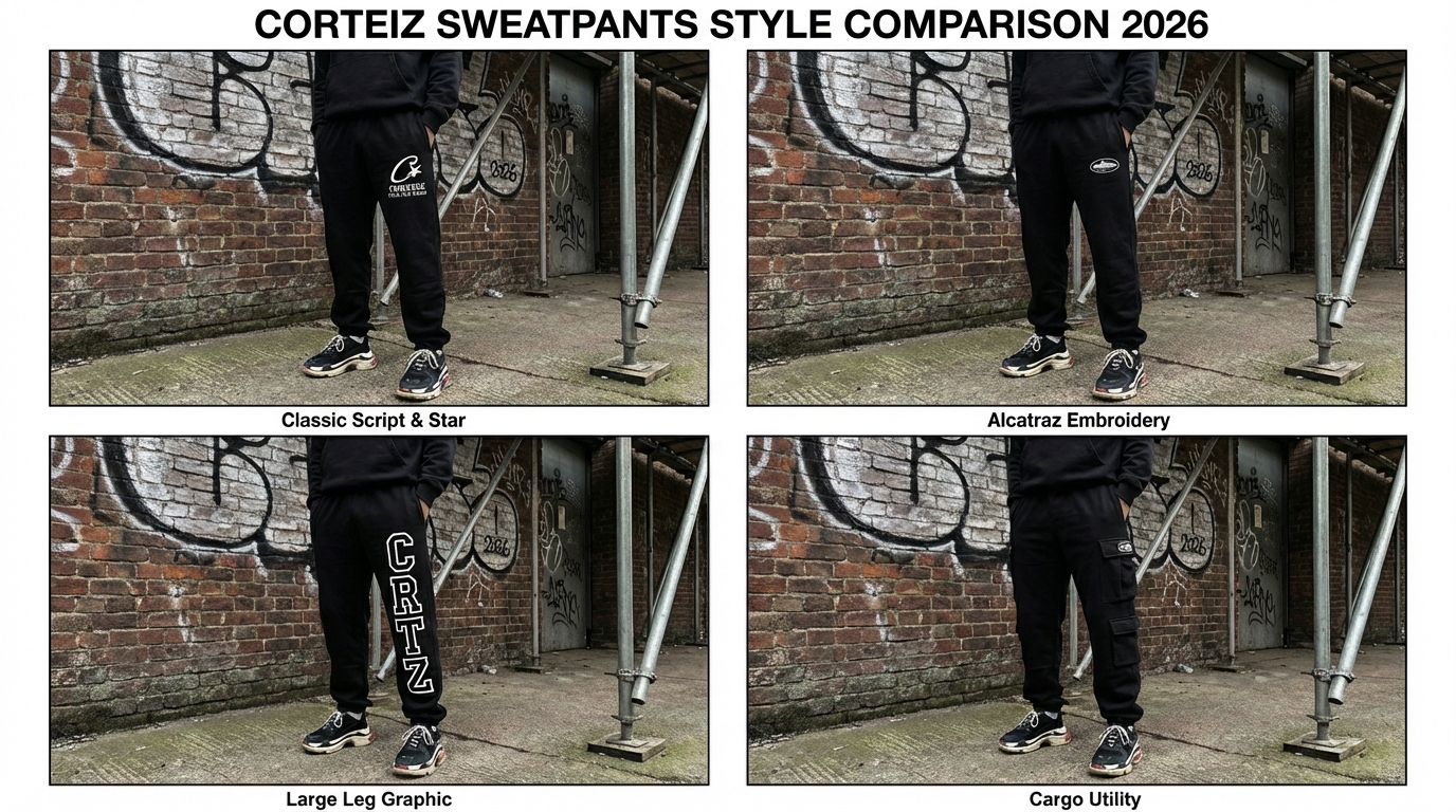 Corteiz makes different black sweatpants styles. Some are simple. Some have special details. Here are the main types in 2026.