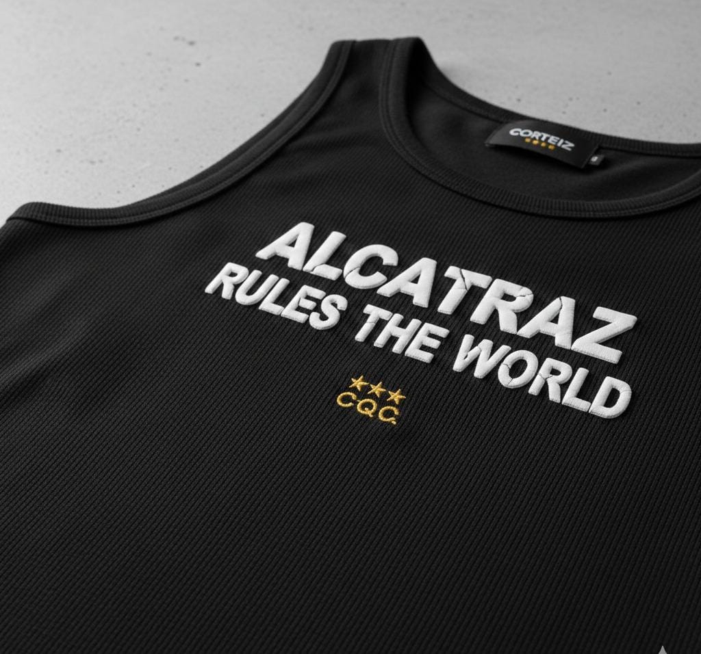 MostCortezz tanks keep the design simple, but make sure you know what brand it is. The Alcatraz logo sits on the chest or back, sized just right—visible without being obnoxious.